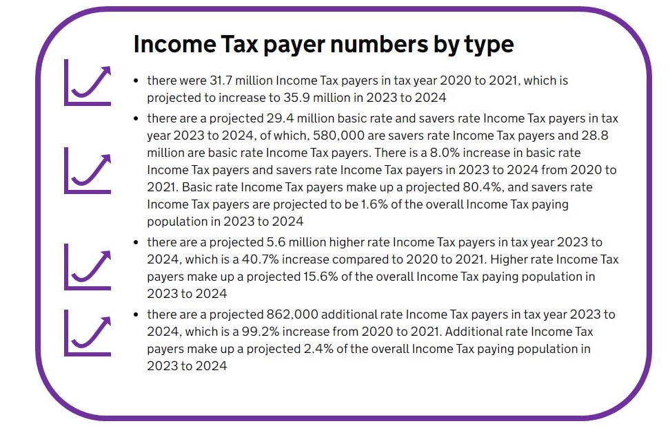 The 99.2% increase in the number of additional rate taxpayers since 2020/21 is staggering, but there’s more. Higher rate taxpayer numbers have increased by over 40%, with 29% more people entering this tax band since allowances were frozen.