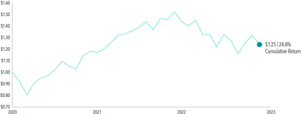 Growth of $1 invested in S&P 500, January 1, 2020–December 31, 2022